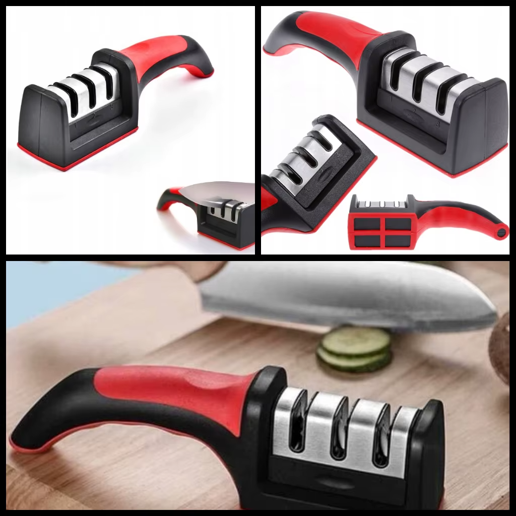 Três Estágios de Afiação: O afiador conta com três posições para afiação, garantindo um acabamento de alta qualidade para diferentes tipos de facas.