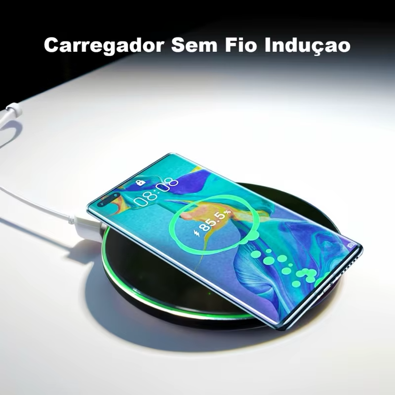 - Sem fio e sem cabos: Coloque o seu celular no pad do carregador e tenha um carregamento sem fio instantâneo, sem a necessidade de conectar fios diretamente ao aparelho.