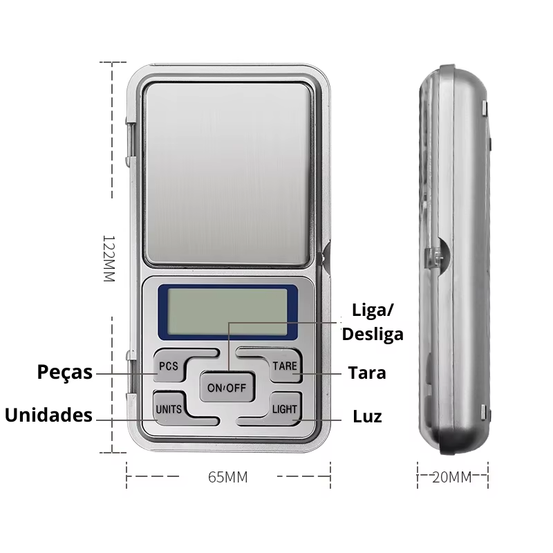 Versatilidade de Uso: Ideal para diversas atividades, como culinária, controle de dietas, pesagem de medicamentos, joias, cosméticos e até postagem postal.
