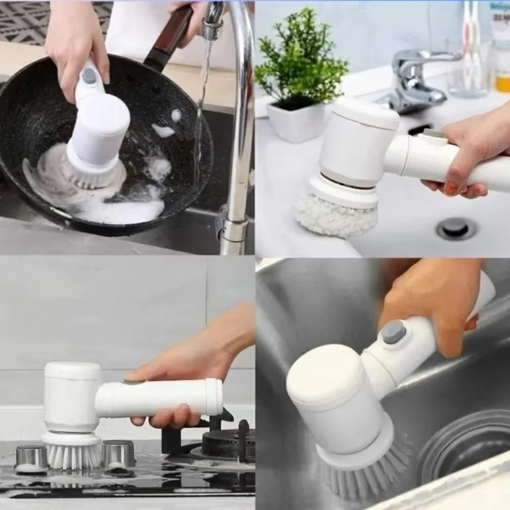Com a Magic Brush, a limpeza de ambientes como cozinha, banheiro e áreas externas se torna mais fácil e rápida, sem a necessidade de esfregar manualmente ou usar produtos agressivos. Ela remove sujeiras difíceis, manchas e acúmulos de maneira eficiente, deixando as superfícies limpas e renovadas.